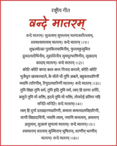 ‘વંદે માતરમ્‌’ ગીતની પહેલી બે કડી કોઈ ધર્મ વિશેષને અભિપ્રેત કાર્ય વિના માતૃભૂમિનો અમૂર્ત સંદર્ભમાં ઉલ્લેખ કરે છે; જ્યારે બાકીની ચાર કડીઓમાં દુર્ગા, સરસ્વતી અને લક્ષ્મી જેવી દેવીઓનો ઉલ્લેખ કરવામાં આવ્યો છે, તેથી જ ગાંધીજી અને રવીન્દ્રનાથ ટાગોરના સૂચનથી પ્રથમ બે કડીઓને જ રાષ્ટ્રીય ગીત તરીકે સ્વીકારવામાં આવી.