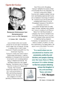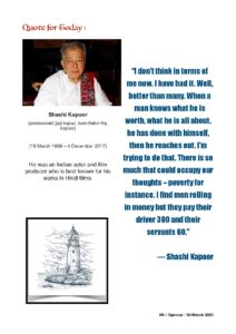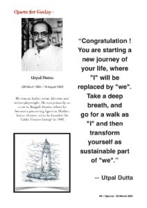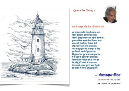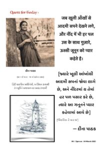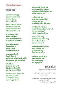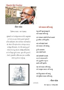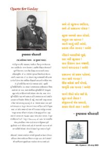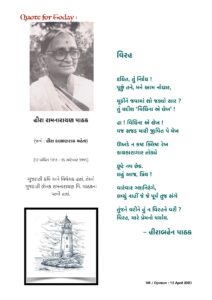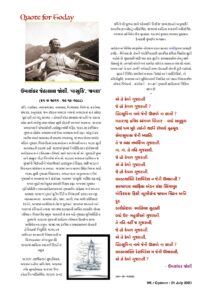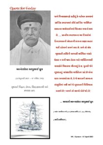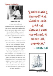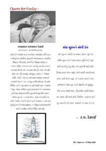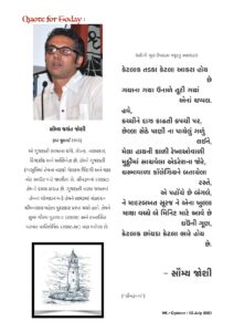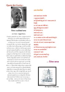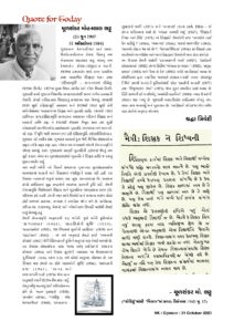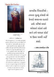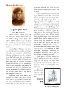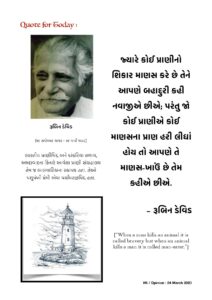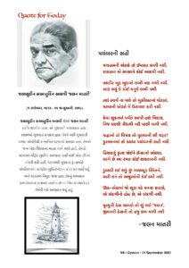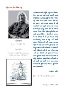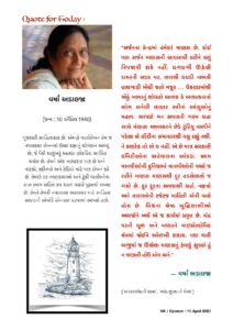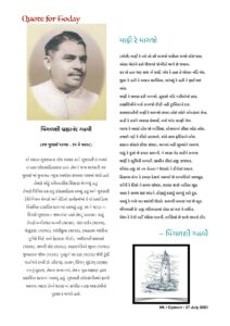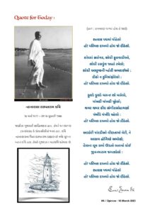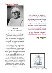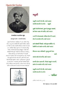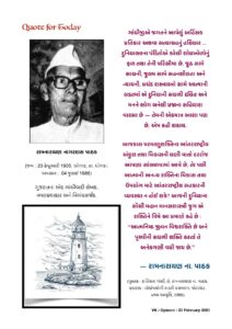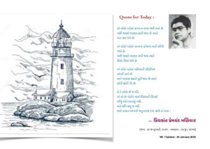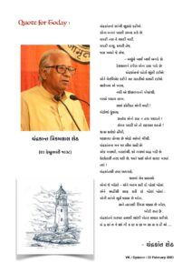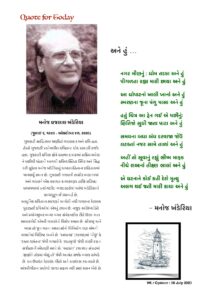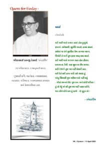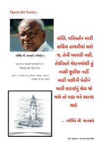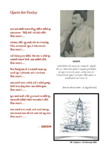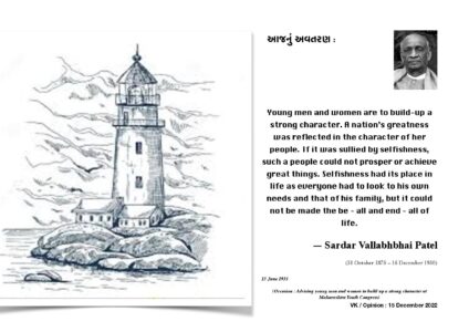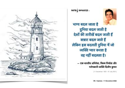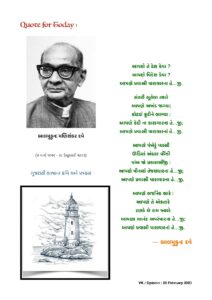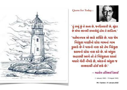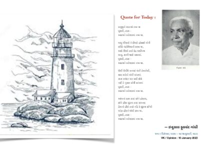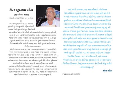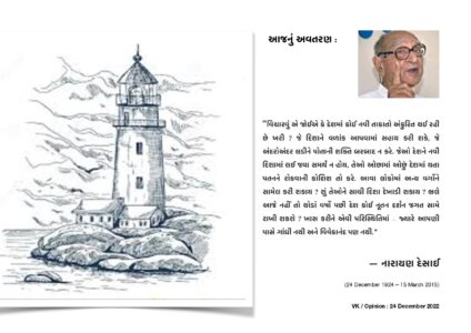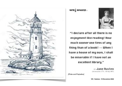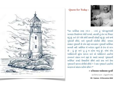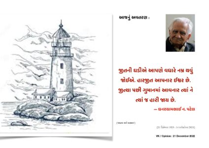 365 દહાડાનો આ હવે પટ વિસ્તાર થયો. નવમી ડિસેમ્બર 2022થી આરંભાયેલી આ શ્રેણી હવે આ સાથે અહીં પોરો લે છે. ખાસ મકસદ સાથે આરંભાયેલી આ જાતરા માટે કેતનભાઈ રુપેરા, નંદિતાબહેન મુનિ અને નીરજભાઈ શાહની સેવાઓનો લાભ મળ્યો છે વળી, ‘વિકીપીડિયા’, ‘ગુજરાતી વિશ્વકોશ’, ‘ગુજરાતી સાહિત્ય પરિષદ’, ‘અરધી સદીની વાચનયાત્રા’, ‘રોજેરોજેની વાચનયાત્રા’, ‘એકત્ર ફાઉન્ડેશન’, ’એનસાઇક્લોપીડિયા બ્રિટાનિકા’, ‘બી.બી.સી., વિચારપત્ર ‘ઓપિનિયન’, ‘નિરીક્ષક’ તેમ જ ‘વિશ્વમાનવ’ વગેરે વગેરેની ઑનલાઇન તેમ જ અન્ય સાધનસામગ્રીનો લાભ ભરપેટ લીધો છે. તે દરેક પ્રતિ સાદરભર્યો ઓશિંગણભાવ વ્યક્ત કરીએ છીએ. નતમસ્તક.