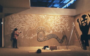 ભોપાલની સંસ્થા ભારત-ભવનના સ્થાપક જગદીશ સ્વામીનાથન્, આદિવાસી કલાનો અભ્યાસ કરવા મધ્ય પ્રદેશના દિન્દોરી જિલ્લાના પાટણગઢની મુલાકાતે આવ્યા હતા. ત્યાંથી ૨૦ કિલોમિટર દૂર આવેલા ગઢસરાઈ ગામમાં તેમણે એક ૧૬ વર્ષના યુવાન જાંગડ શ્યામને છાણ અને માટીના ગારાથી લીંપેલ દીવાલ પર ચાકથી ચિત્ર કરતો જોયો. અને એમની ખોજ પૂરી થઈ. તેમણે આ યુવાનને ભોપાલ લાવીને થોડીક વિશેષ તાલીમ આપી. પછી તેને ભારત ભવનના પ્રવેશ પાસેની દીવાલને સુશોભિત કરવાનું કામ સોંપ્યું. અને આ અદ્દભુત રચનાએ આકાર લીધો.