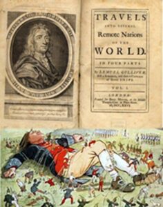 ગલિવરના નામે આ પુસ્તક લખનાર તે આઈરિશ પ્રોટેસ્ટન્ટ પાદરી અને કટાક્ષ લેખક જોનાથન સ્વિફ્ટ. એ જમાનાના બ્રિટનના રાજકારણીઓ પર અને સામાજિક રીતરસમો પર આ કૃતિમાં જે વેધક કટાક્ષો છે તેને કારણે સ્વિફ્ટે લેખક તરીકે પોતાનું નામ છાપ્યું નહોતું. અને છતાં સ્વિફ્ટના વિરોધની ઐસી તૈસી કરીને પ્રકાશકે મૂળ લખાણમાંનો કેટલોક ભાગ કાઢી નાખ્યો હતો. પુસ્તક પ્રગટ થયું તે પછી માત્ર એક જ અઠવાડિયામાં તેની બધી નકલો ખપી ગઈ. ત્યારથી આજ સુધીમાં આ પુસ્તક ક્યારે ય આઉટ ઓફ પ્રિન્ટ થયું નથી. પ્રખ્યાત ફ્રેંચ લેખક અને વિચારક વોલ્તેરે ૧૭૨૮માં સ્વિફ્ટને લખેલું: “જેમ જેમ હું તમારી કૃતિ વાંચતો જાઉં છે તેમ તેમ મેં જે કાંઈ લખ્યું છે તે અંગે હું શરમ અનુભવતો જાઉં છું.” અને પ્રખ્યાત કવિ-વિવેચક ટી.એસ. એલિયટે ૧૯૨૬માં આપેલા ક્લાર્ક લેક્ચર્સમાં સ્વિફ્ટને ‘ધ ગ્રેટેસ્ટ રાઈટર ઓફ ઇંગ્લિશ પ્રોઝ’ તરીકે ઓળખાવ્યો હતો.